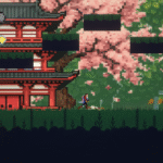 A 2D platformer featuring combat, enemy encounters, Chinese-themed UI, and an in-game shop for sword upgrades using virtual currency.