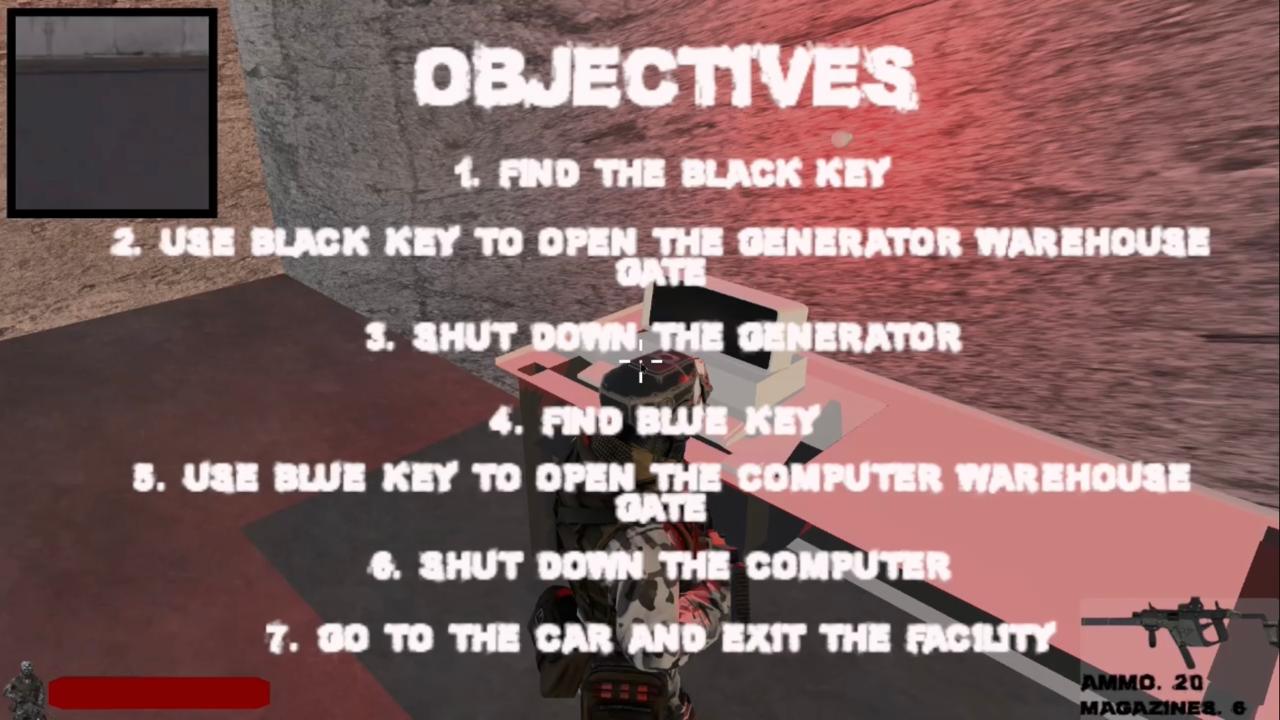 A third-person multiplayer shooter with mission-based progression and tactical gameplay. Designed as an experimental prototype with objectives like captures, infiltrations, and team combat.